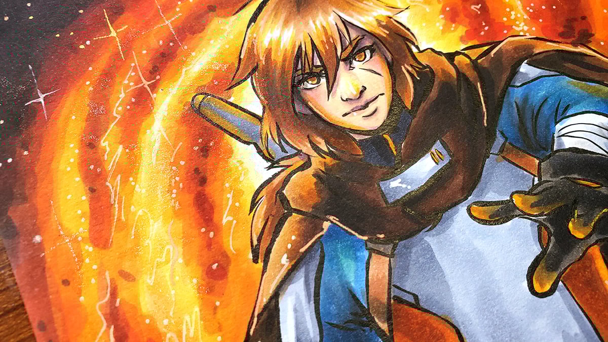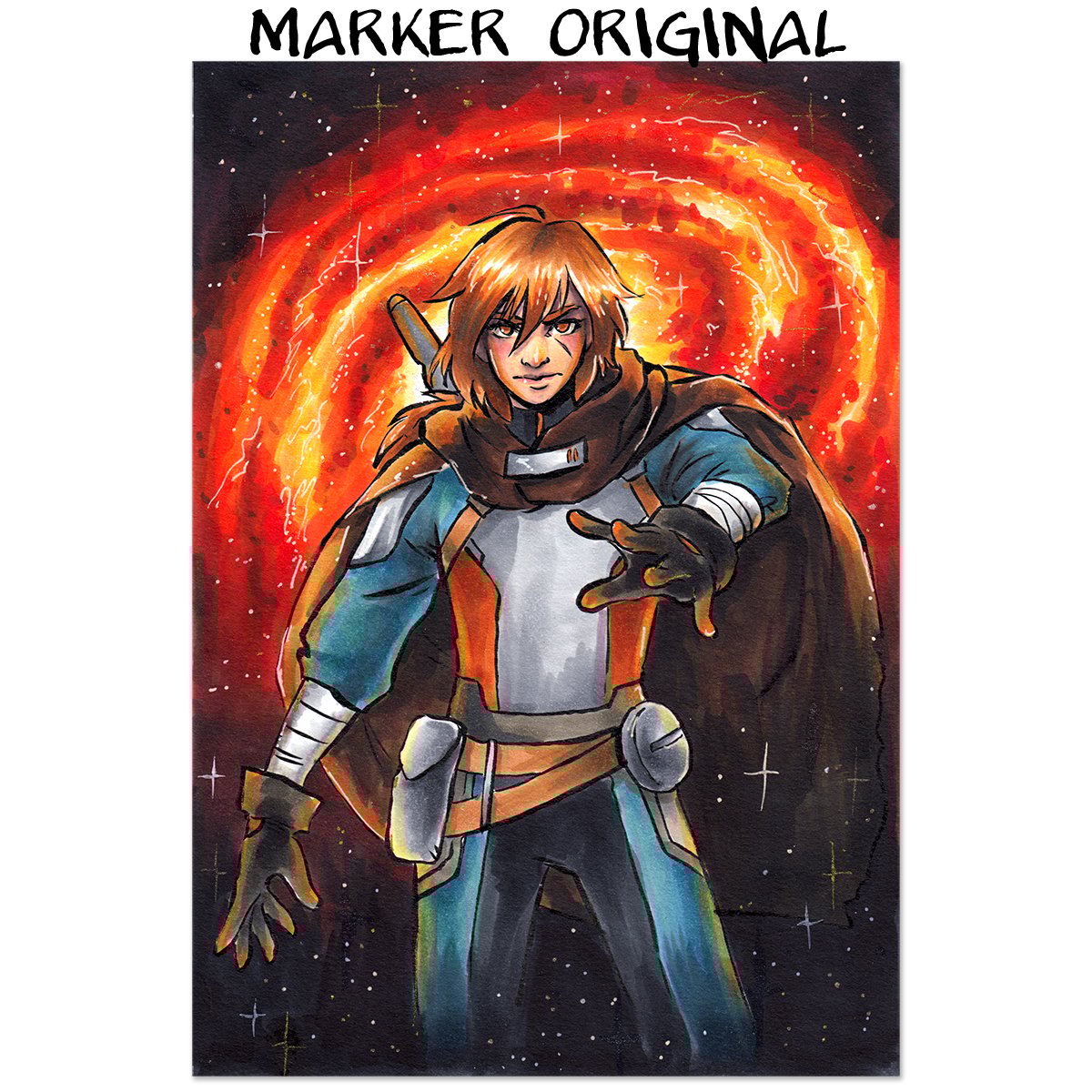 Marker drawing of Matt Holt from the Netflix series Voltron. Measures 6x9 inches and features metallic and neon highlights.