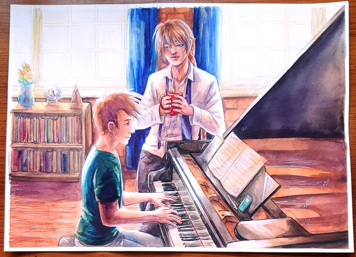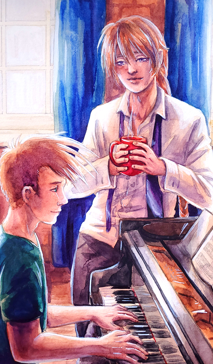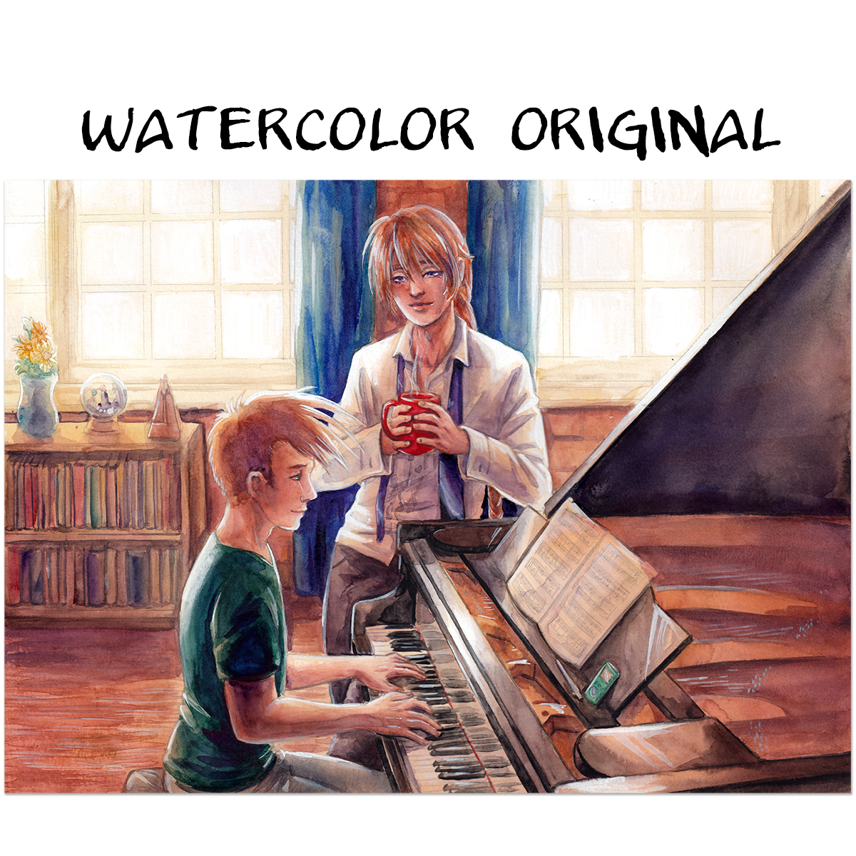 Watercolor original of Duo Maxwell and Trowa Barton from Gundam Wing. Original measures 11x15.