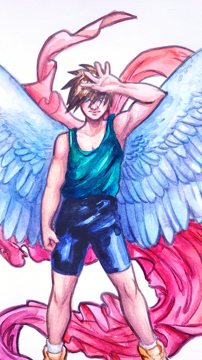 Watercolor original in an art nouveau style of Heero Yuy from Gundam Wing. Measures 11x15 inches.