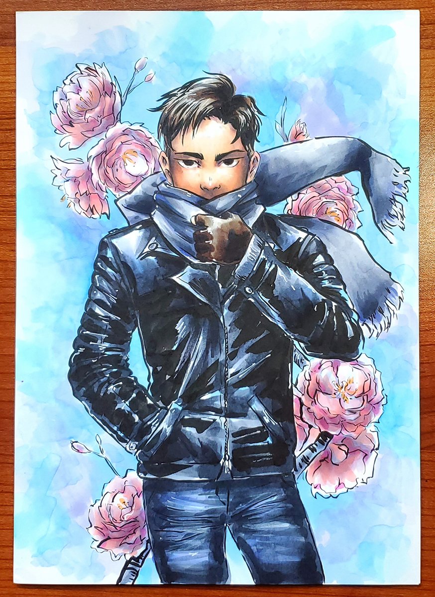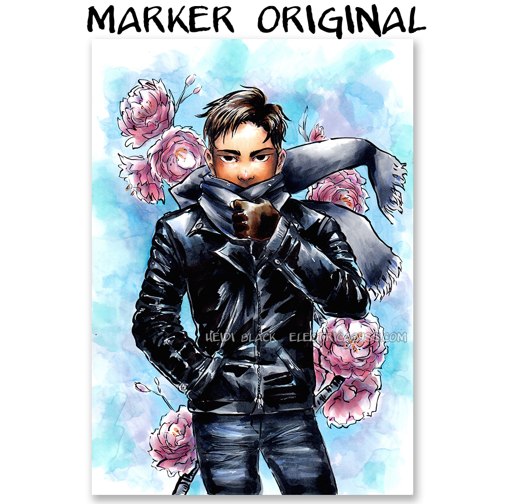 Marker drawing of Otabek from the anime series Yuri on Ice. Measures B5 (6.9 x 9.8) inches.