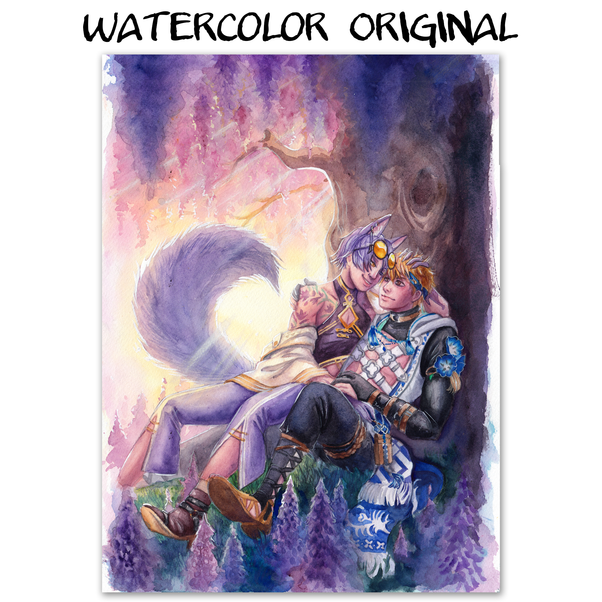 Watercolor art of Quincy and Kuya from NuCarnival. Measures approximately 12x16"