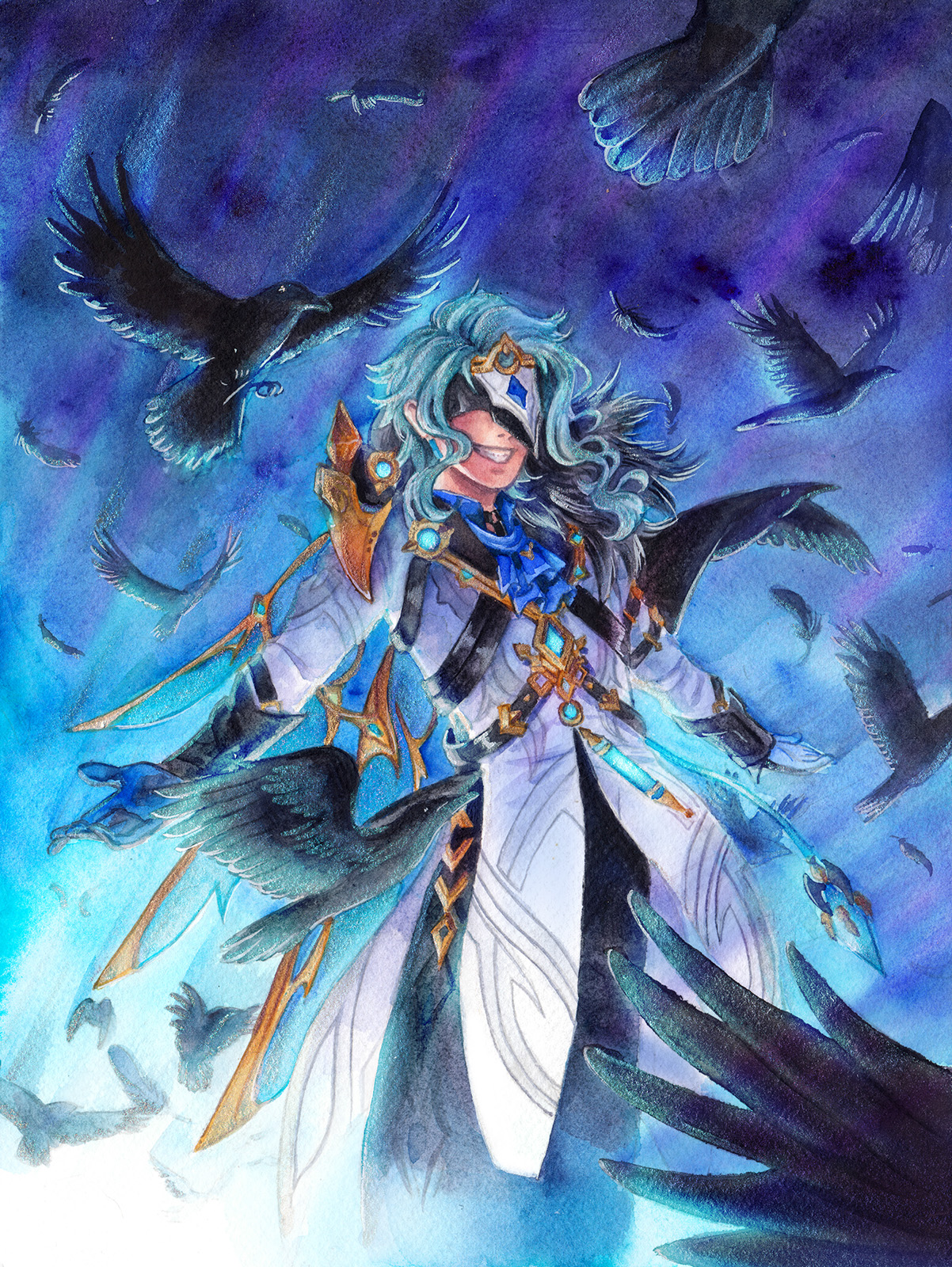 Mixed Media Original - Genshin Impact - Golden Winged King