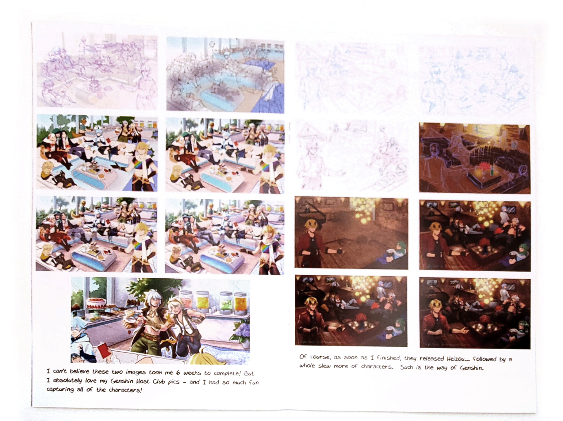 Features drawings, sketches, and doodles from Genshin Impact. Volume 2 completed 2022 and features characters up to version 3.0