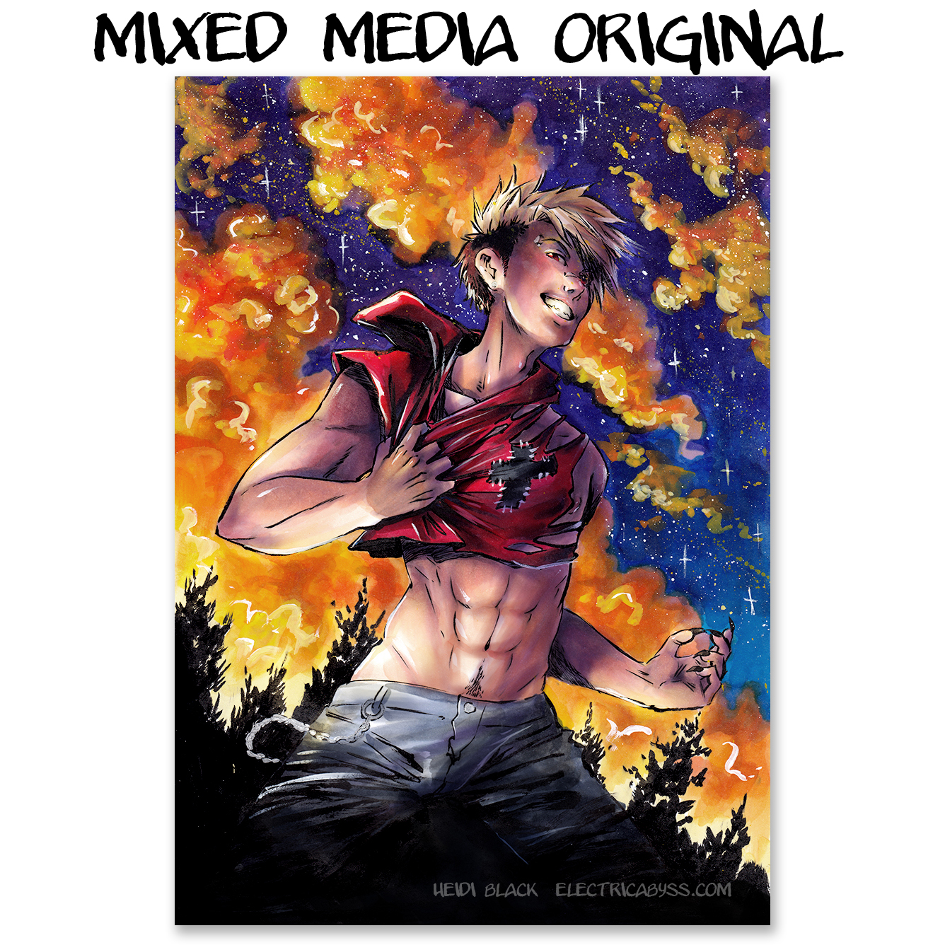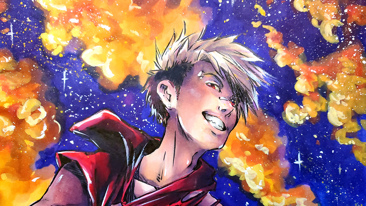 Marker and gouache drawing for a "draw this in your style" challenge. Original is B5 size (6.9 x 9.8 in) and has a slight curl on the bottom of the page due to the ink.
