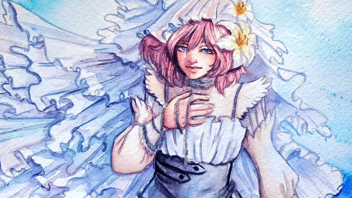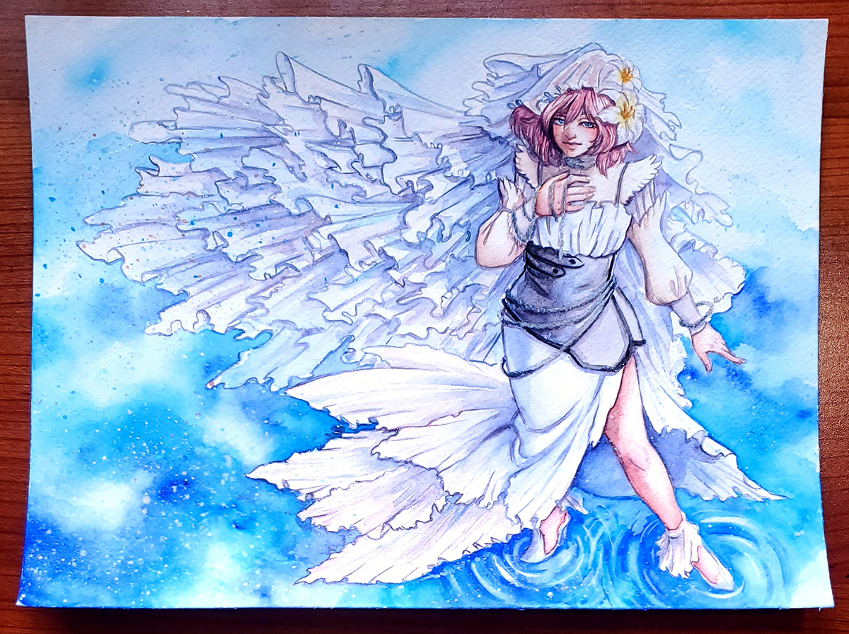 Watercolor original of a "draw this in your style" challenge. Measures 9 x 12 inches.