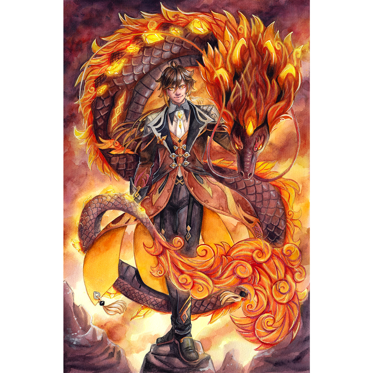 11x17 Poster Print of Zhongli/Rex Lapis from Genshin Impact.