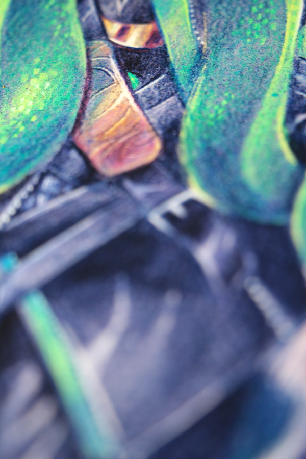 Original artwork. Caran d'ache colored pencil on 11x17" colored canson paper.